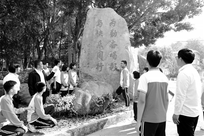 者后中學初中部學生在學習校訓石的淵源。 學校供圖