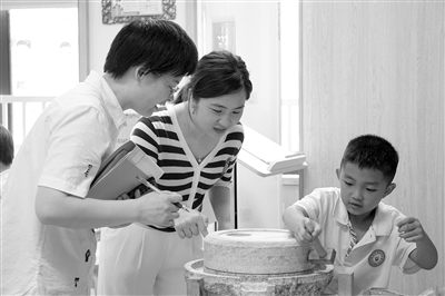 大圖:在李漁小學的“創生周”,學生學習制作李漁故居的標志性建筑“且停亭”。