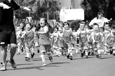 幼兒園小朋友在戶外開展體適能訓練。 成都市第三十幼兒園 供圖