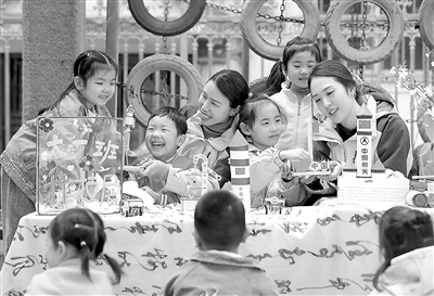 在湖北省荊門(mén)市電力幼兒園舉辦的“觸摸未來(lái)”科技節(jié)上,老師引導(dǎo)孩子們對(duì)組裝的空氣動(dòng)力火箭進(jìn)行測(cè)試發(fā)射。 趙平 攝