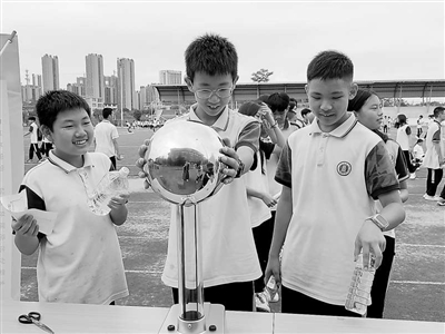 學校聚焦一體化推進科學教育。“科學+智育”,重視實驗教學在科學教育中的作用,結合學科周活動開展各年級實驗大比拼,由“講實驗”走向“做實驗”,學生在動手實踐中培養創新意識,實踐品格。“科學+德育”,結合午會課、主題班會課,演示科學小實驗,講述科學家的小故事,激發學生對科學的興趣,使其從小樹立科學夢想。“科學+體育”,主要利用信息技術賦能體育教學。“科學+美育”,結合科藝節活動,開展“科幻繪畫展”“科技創意秀”等項目,調動多學科素養助力科學涵養。“科學+勞育”,學校整合了“一畝田”“春風林”“百果園”等室外場地,有效拓展了學生的學習空間,讓學生在勞動中感受科技給生活帶來的變化。