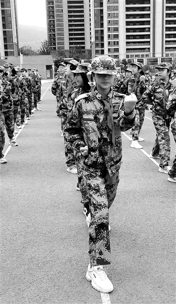 甘肅省蘭州市東郊學校學生在進行隊列訓練。學校供圖