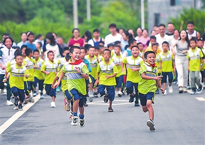 ②永州市道縣第四小學的學生、家長參加“校長喊你來運動”全員文體活動。