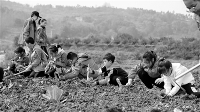 ①重慶市江津區(qū)四牌坊小學(xué)校學(xué)生在勞動基地開展實踐活動。