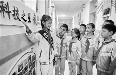 “錢(qián)學(xué)森爺爺沖破封鎖回國(guó)效力”“南仁東爺爺在貴州深山里造出‘天眼’”……河北省秦皇島市海港區(qū)建設(shè)路小學(xué)的走廊里常常回蕩起這樣的童聲。