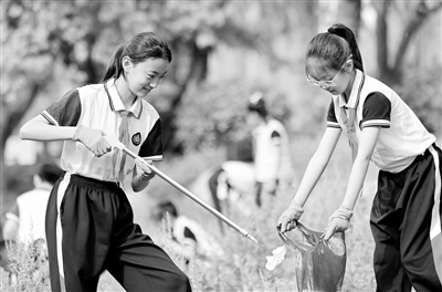 近日,山東省棗莊市市中區紅旗小學學生在當地西沙河岸邊清理垃圾雜物,倡導愛護環境,共同守護家園。