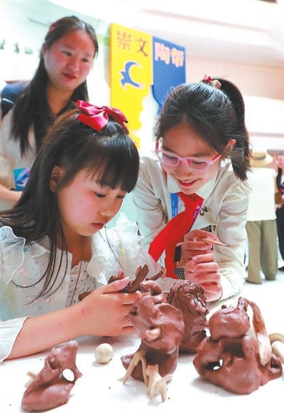 4月26日,湖南省長沙市岳麓區博才梅溪湖小學蔣傳雨老師帶領學生到第八屆中小學生藝術展演活動全國匯演實踐活動成果(工作坊)展示現場參觀,孩子們收獲滿滿。 本報記者 張學軍 攝