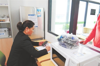 ①南京農業大學濱江校區誠苑3舍宿舍管理員王梅在進行藥品登記。