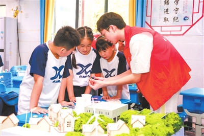 近日,在湖南長沙長郡雨花外國語第三附屬小學,長沙理工大學電氣學院“E路同行”團隊志愿者用導線、燈泡等簡易教具演示電流傳導原理,為40余名小學生揭開新型電力系統的奧秘。 朱杰 攝