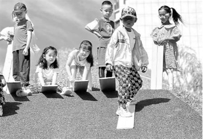 孩子們在山坡上創新滑板游戲玩法。田利珍 攝