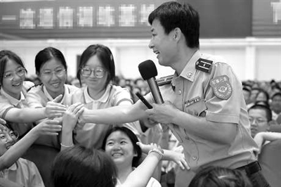 保定中學邀請雷鋒班第22任班長吳錫有來校開展大思政教育。 王祎銘 攝