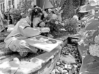 幼兒在戶(hù)外寫(xiě)生。 幼兒園供圖