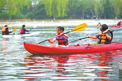 6月1日,參加活動的市民在北京通惠河上劃皮劃艇。當日,2025年“奔跑吧!少年”兒童青少年皮劃艇主題健身活動在北京市朝陽區舉行。 新華社記者 金良快 攝