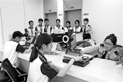 5月29日,民警指導學生體驗操作簽注自助機。 沈冬兵 攝