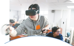 北京交通大學學生在軌道交通通信與控制虛擬仿真實驗教學中心進行VR實驗。 資料圖片