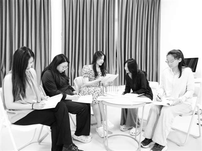 山東省利津縣弘毅實(shí)驗(yàn)學(xué)校的教師們?cè)谝黄鹧杏憽靶慕逃闭n程校本方案。學(xué)校供圖
