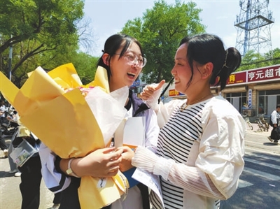 ③ 6月9日,在新樂市第一中學考點,結束考試的考生與前來迎接的家人擁抱。 王瑞夫 攝