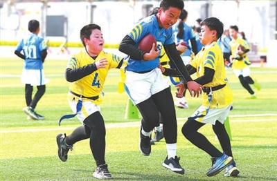 在水一方小學把腰旗橄欖球項目引入校園,將其精心培育成為學校的特色體育品牌。