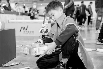 太原市迎澤區參賽學生正在比賽現場維修機器人。迎澤區教體局供圖