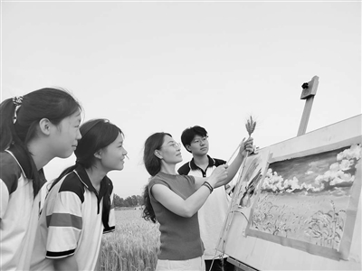 近日,新樂市第四中學美術教師在北青同村麥田指導學生描畫麥子豐收景象。