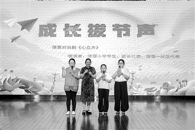 在常州市鐘樓區(qū)2025年心理健康活動(dòng)月主題活動(dòng)中,學(xué)生、家長(zhǎng)和社工代表共同表演情景劇。盛佳妮 攝