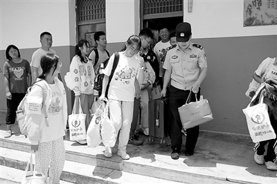 民警護(hù)送考生們出發(fā)(6月16日攝)。