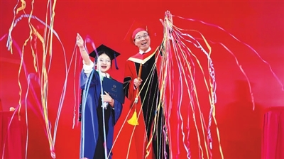 中國農(nóng)業(yè)大學畢業(yè)典禮上,校長孫其信與畢業(yè)生互動合影。學校供圖