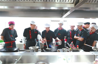 “安全第一,勤學(xué)苦練。”王富春原本是煙臺(tái)汽車工程職業(yè)學(xué)院烹飪專業(yè)的教師,去年來到長(zhǎng)島職業(yè)中等專業(yè)學(xué)校支教。在實(shí)訓(xùn)教室,王富春正在帶領(lǐng)學(xué)生們動(dòng)手制作自己創(chuàng)新的金槍魚水餃、海鮮拉面等。“我想把這些富有海島特色的烹飪經(jīng)驗(yàn)傳授給島上的學(xué)生。”王富春說。