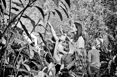 科學(xué)教師帶領(lǐng)學(xué)生觀察植物。