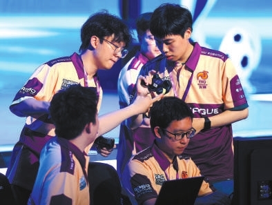 6月28日,清華火神隊與中國農業大學山海隊的機器人選手在比賽中。