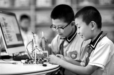 近日,甘肅省張掖市甘州區(qū)思源實驗學(xué)校學(xué)生在學(xué)習(xí)智能制造。楊瀟 攝