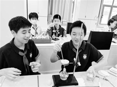上海市黃浦區教育學院附屬中山學校學生在進行科學實驗。韓志琦 攝