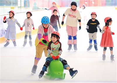7月13日,小朋友們在江蘇南京一處室內滑冰場滑冰。眼下,我國多地持續高溫,酷暑熱浪催熱“清涼經濟”。
