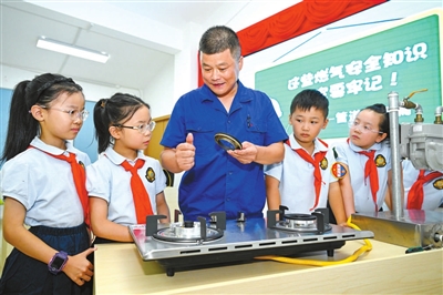 近日,在安徽省合肥市廬陽區雙崗街道白水壩社區黨群服務中心,小朋友們學習安全用氣知識。暑假來臨,該社區組織形式多樣的安全知識教育活動,幫孩子提高自我保護能力。