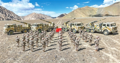 7月31日,在海拔4300多米雪域高原駐守的新疆軍區某合成團組織開展“邊關有我,請祖國放心”主題活動,官兵們面向軍旗莊嚴宣誓(無人機照片)。軍旗飄揚,軍徽閃耀,軍歌嘹亮。連日來,廣大官兵堅守戰位,以忠誠與擔當守護家國安寧,用實際行動慶祝中國人民解放軍建軍98周年。丁勇 攝(新華社發)