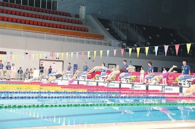 選手們在進(jìn)行男子自由泳比賽。 閆鎖田 攝