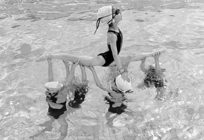 鹽城市解放路實驗學校暑托班學生在進行水中劈叉托舉訓練。學校供圖