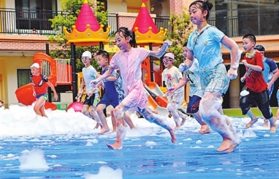 8月7日,孩子們在開心玩耍。