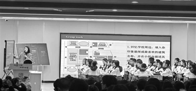吳云開名師工作室成員陳葉葉在中國(guó)教育學(xué)會(huì)外專委年會(huì)上現(xiàn)場(chǎng)授課。 資料圖片