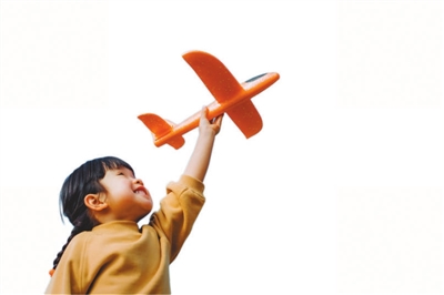 女孩在玩飛機(jī)玩具。 視覺中國供圖