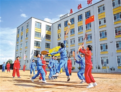 9月16日,吉林省吉林市烏拉街滿族中學學生在操場上進行珍珠球比賽。入選國家級非物質文化遺產的特色體育運動珍珠球源于東北地區的采珠活動。烏拉街滿族中學作為珍珠球傳承教學基地,將這項運動納入必修課程。