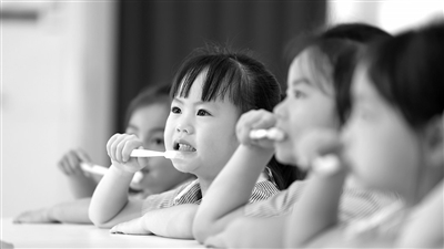9月19日,貴州省銅仁市玉屏侗族自治縣實驗幼兒園的小朋友在練習正確的刷牙方法。胡攀學 攝