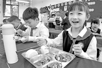 近日,河南省新密市政通路小學學生正在享用美味午餐。近年來,該校在做好食品安全監管的同時落實校長、教師、家長陪餐制,確保校園食品安全。按照膳食營養搭配,制定科學的青少年健康食譜,確保青少年吃得安心、吃得健康、吃得科學。本報記者 單藝偉 攝