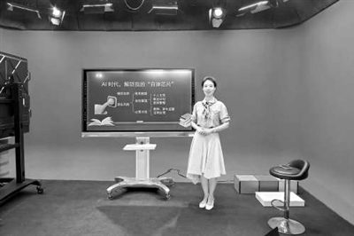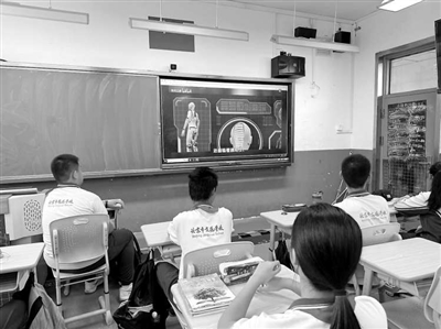 北京市京源學校教師在錄制AI相關內容的主題班會。 學校供圖