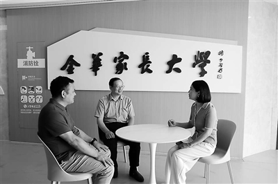 家庭教育專家吳惠強(qiáng)教授(中)在接受金華市中小學(xué)家長(zhǎng)咨詢。饒旭華 攝