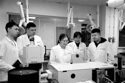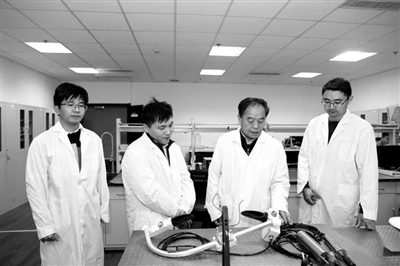 綠色造紙與資源循環(huán)全國重點實驗室主任吉興香教授(左二)指導學生實驗。