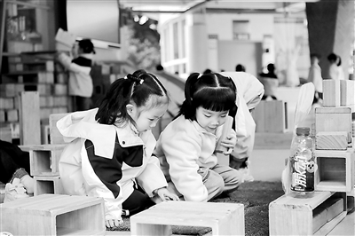 幼兒在搭建游戲基地。 作者供圖