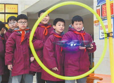 湖南省永州市道縣道州玉潭(東陽)學(xué)校,學(xué)生們在老師的指導(dǎo)下學(xué)習(xí)無人機操作技術(shù)。通訊員 蔣克青 攝