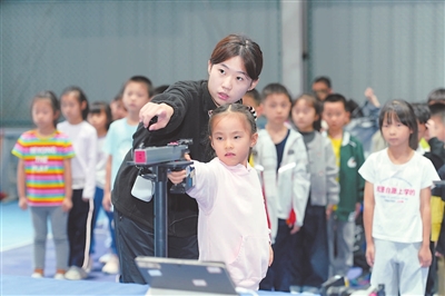 重慶市北碚區(qū)朝陽小學(xué)以社團建設(shè)為重點推進課后延時服務(wù),圖為孩子們在參加射擊社團活動。通訊員 秦廷富 攝