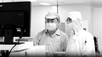 池州學院半導體器件制造與應用微專業學生(右)在車間接受企業導師指導。學校供圖